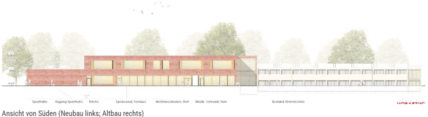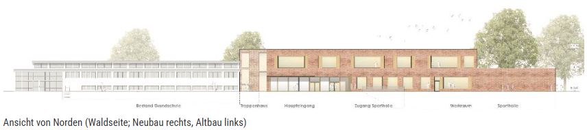 Neubau einer Grundschule mit 9 Klassenzimmer und vielen diversen Neben-, Sanitär- und Technikräumen, sowie einer 3-fach Sporthalle.